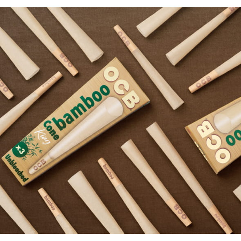 OCB-12243 OCB Bamboo Cones - Unbleached 1 1/4 Size (79mm) - Retail Box of 32 Packs of 6 (192 Total)