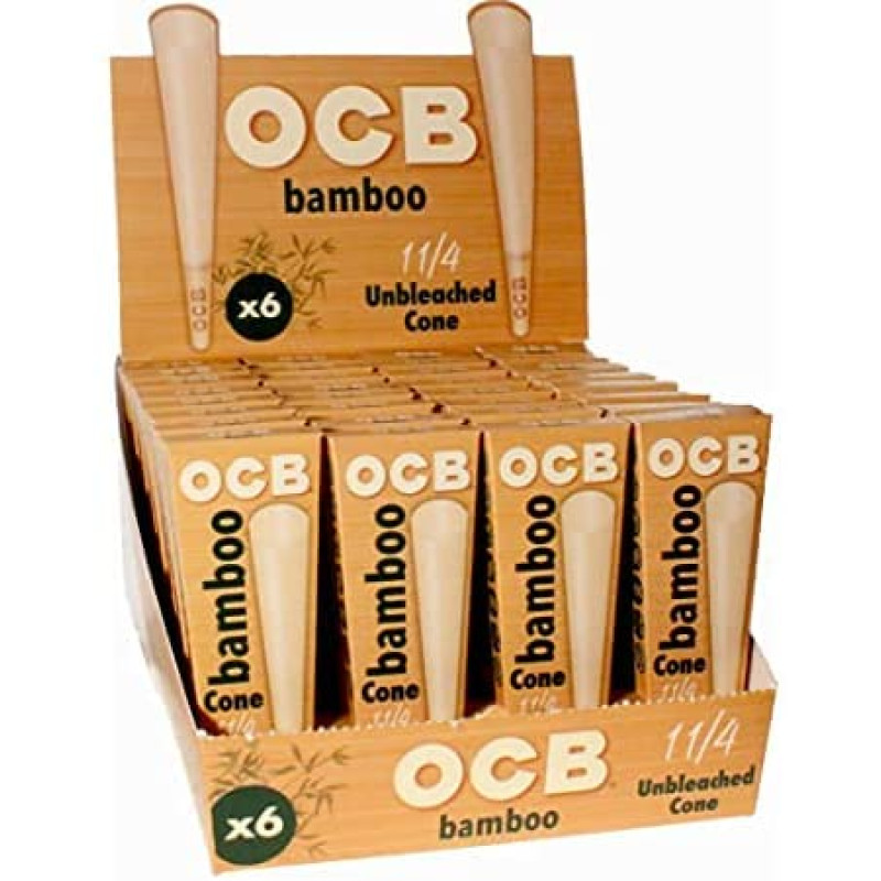 OCB Bamboo Cones - Unbleached 1 1/4 Size (79mm) - Retail Box of 32 Packs of 6 (192 Total)