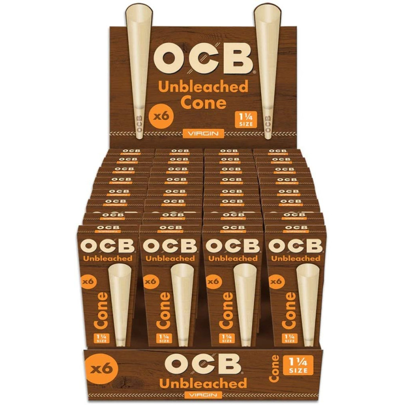 OCB-12013 OCB Virgin 1 1/4 Size Cone 6 Packs of 32 Unbleached Pre Rolled Rolling Papers with Tips ~ Includes American Rolling Club Tube